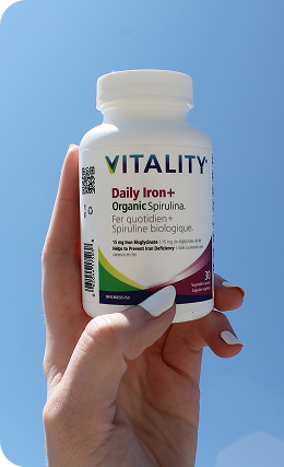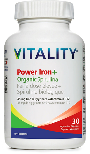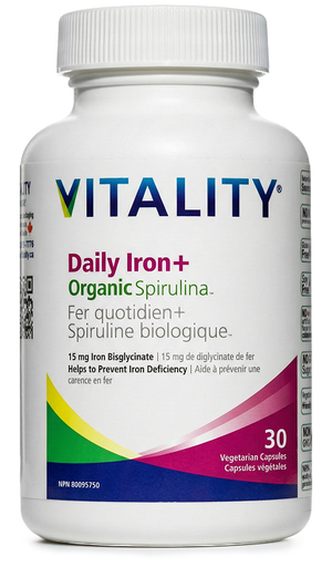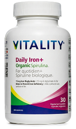 VITALITY is made in Canada, is Vegan, Gluten Free, Soy Free, Non-GMO, Sugar and Dairy Free. No artificial colours, flavours or preservatives have been used in this iron supplement with spirulina. All products are third party tested for quality, purity and potency.